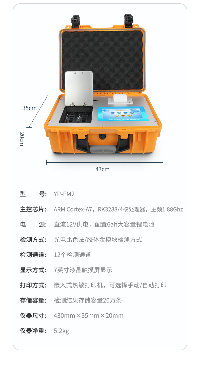 14、仪器尺寸:43×35×20cm,主机净重:5.2g