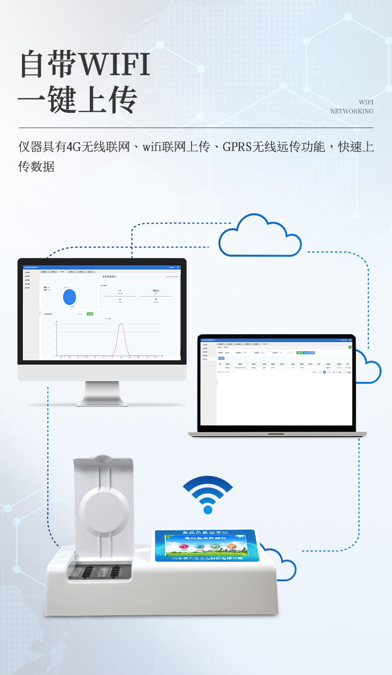 1、安卓智能操作系统,采用更加高效和人性化操作,仪器具有网线连接、wifi联网上传、4G无线远传功能,快速上传数据。