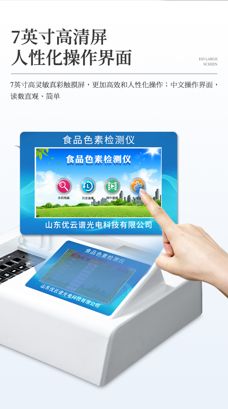 2、显示方式:7英寸彩色触摸屏显示,人性化中文操作界面,读数直观、简单。