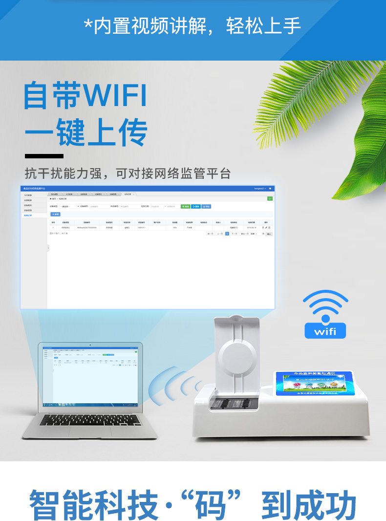 1、安卓智能操作系统,采用更加高效和人性化操作,仪器具有网线连接、wifi联网上传、GPRS无线远传功能,快速上传数据。