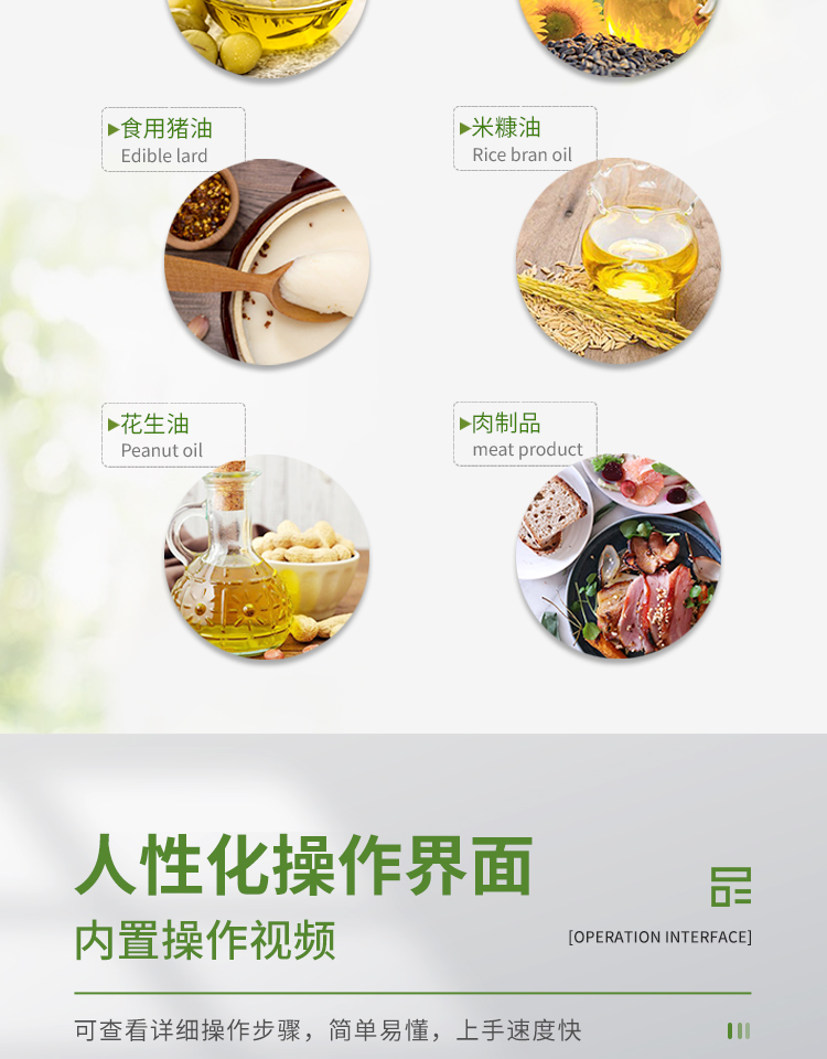 广泛应用于质量监督检验、工商管理、油炸食品生产基地、食药监局、卫生部门、肉制品食品深加工企业、商场超市、各大食品安全监测系统等单位使用。